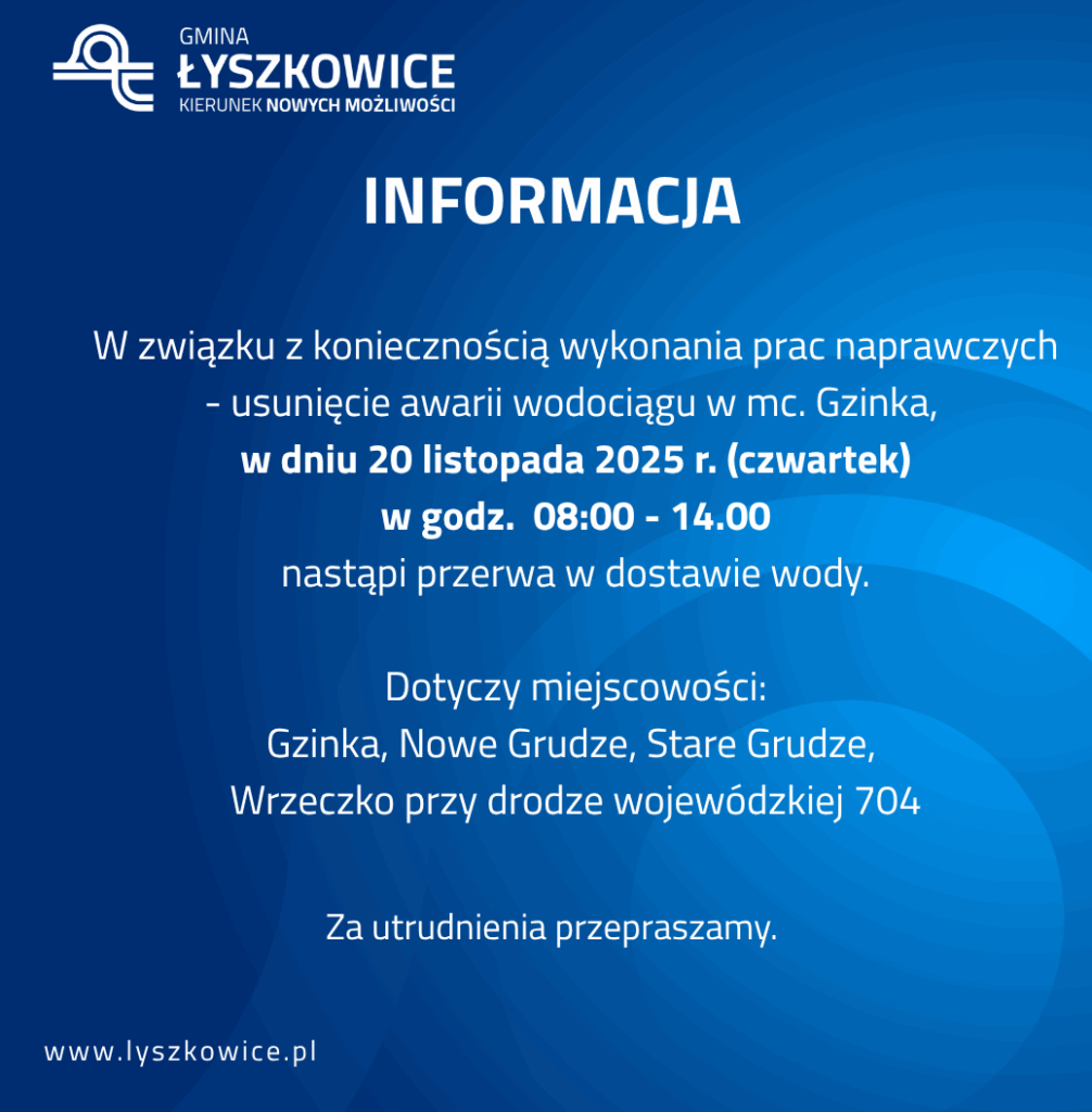 Zmieniamy tytuł Na podstawie art. 20 ust. 1 ustawy z dnia 8 marca 1990 roku o samorządzie gminnym (tj. Dz. U. z 2025 r., poz. 1153) zwołuję XX sesję Rady Gminy Łyszkowice w dniu 26 listopada 2025 r. na godz. 15:00 w Gminnym Ośrodku Kultury i Sportu w Łyszkowicach. Proponowany porządek obrad Otwarcie XX Sesji Rady Gminy […]